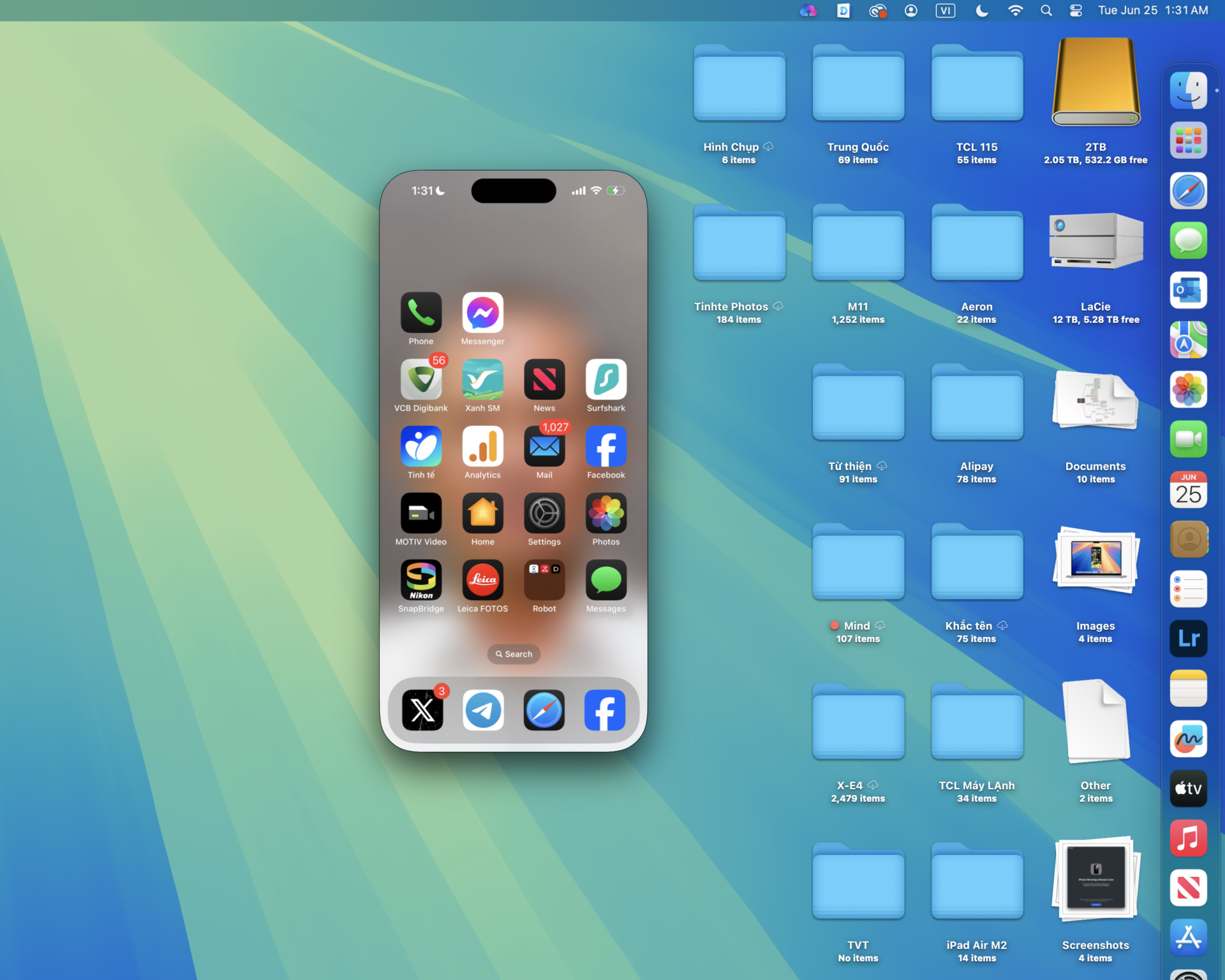 Khi tính năng này được sử dụng thì trên MacBook nói riêng hay macOS nói chung sẽ có một chiếc iPhone ảo trên màn hình, nó chính là chiếc iPhone mà anh em đang để trong giỏi hay trong túi quần. Và chúng ta sẽ sử dụng được các tính năng của iPhone ngay trên màn hình của MacBook mà không cần phải lấy iPhone ra khỏi túi quần.