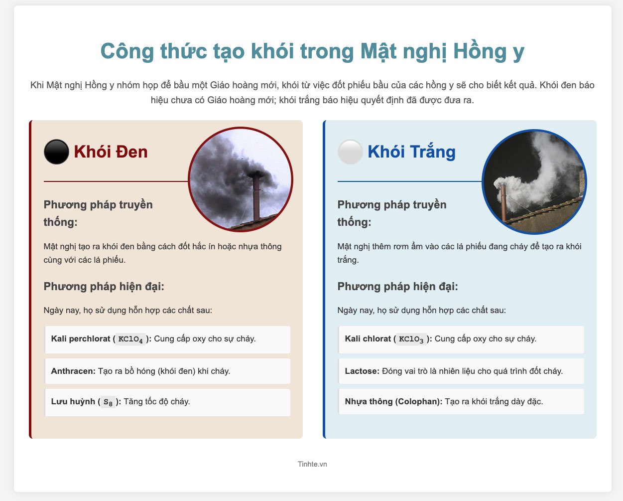 Sự kết hợp của các chất này khi cháy cùng phiếu bầu sẽ tạo ra làn khói trắng rõ rệt, báo tin vui cho toàn thế giới.