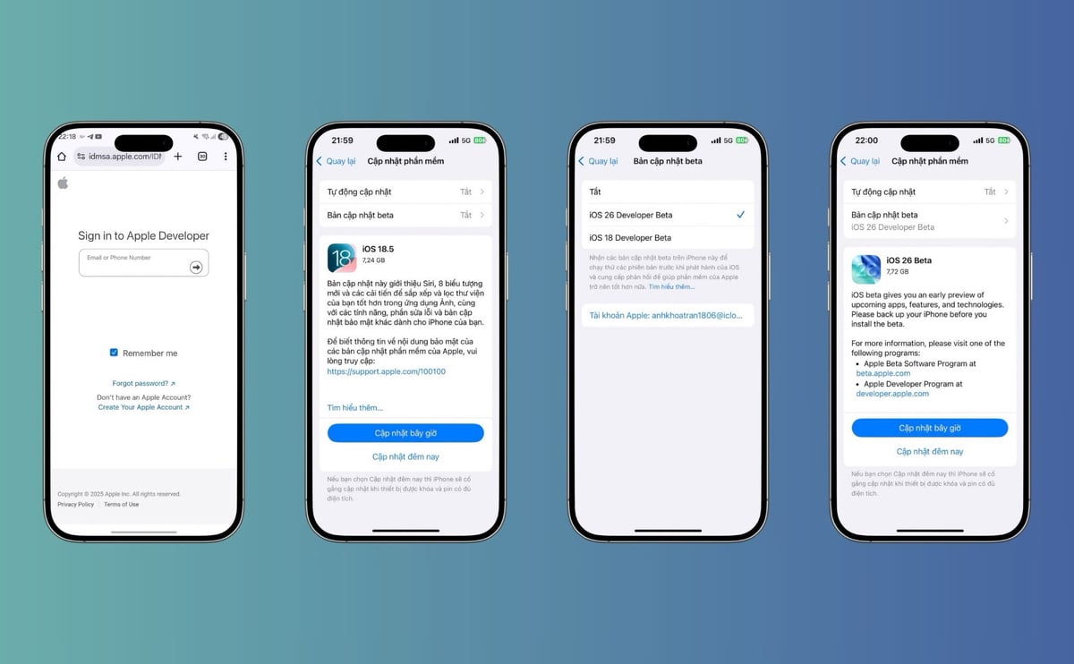 Để nâng cấp lên iOS 26 Developer Beta, anh em có thể làm theo các bước hướng dẫn dưới đây: