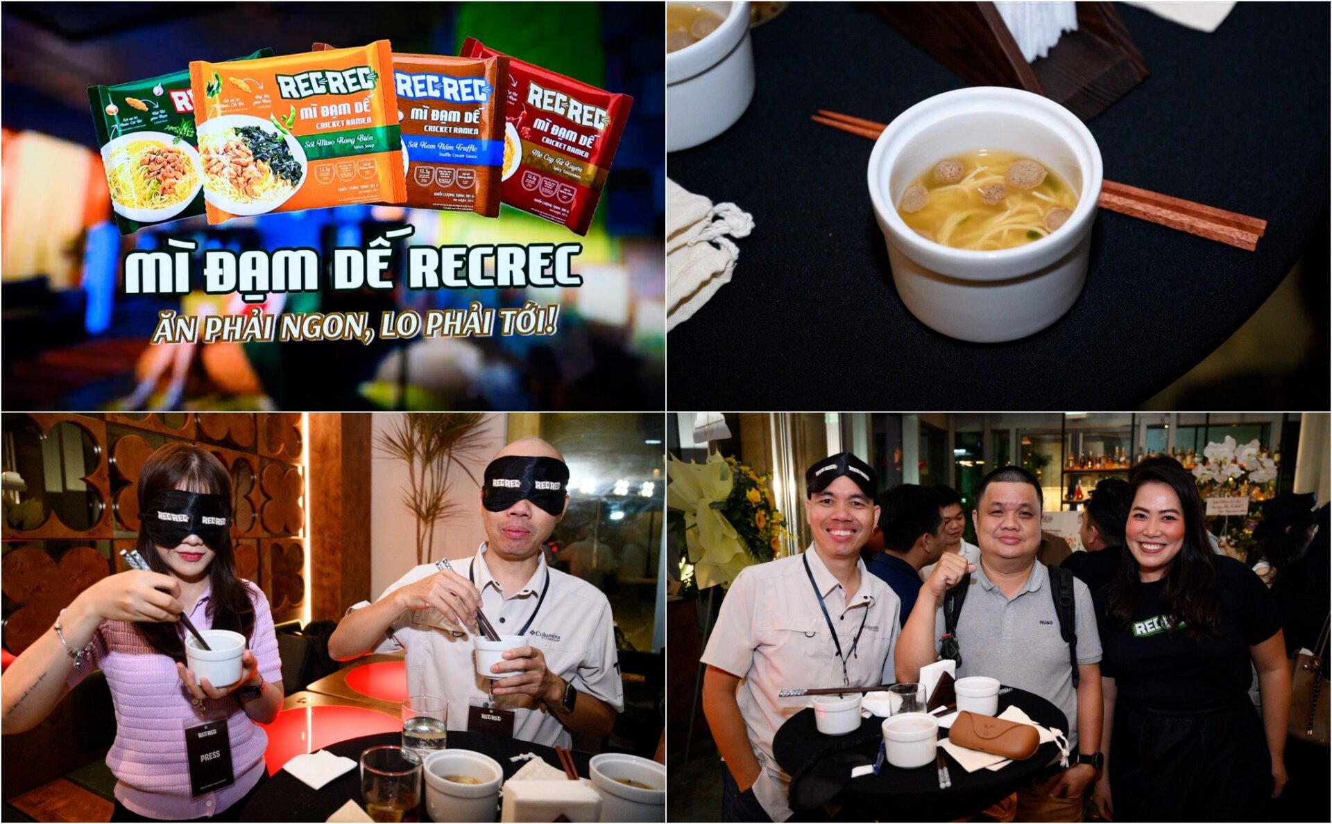 Cả 4 hương vị đều sẽ có điểm chung là khối lượng 101g, sợi mì không chiên và dai như mì tươi. Theo RECREC, họ ứng dụng công nghệ để nước hầm đậm đà từ dế, topping bên trong 4 loại mì đều có 9g thịt dế với dạng miếng thịt dùng công nghệ tạo cấu trúc.