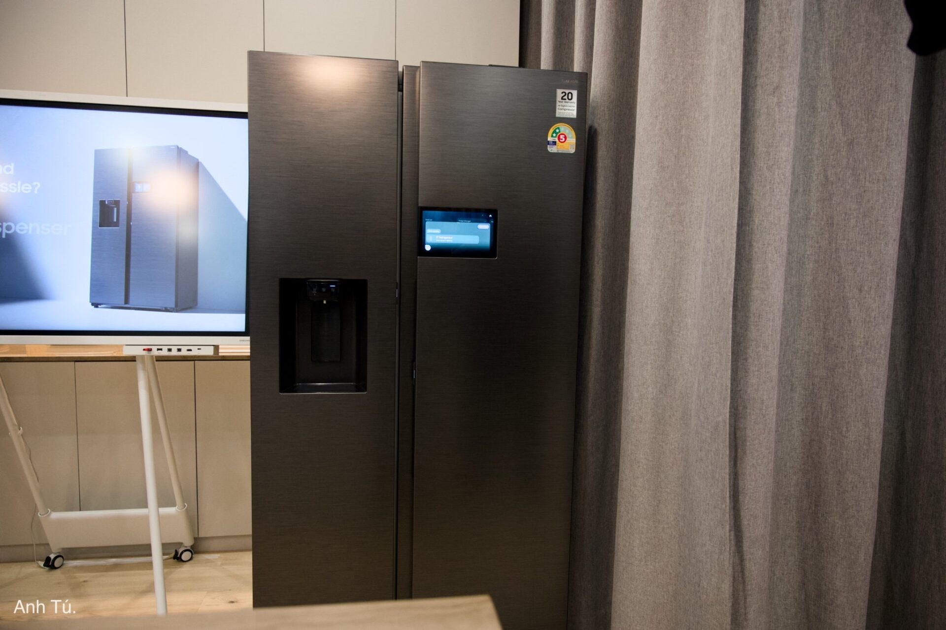 Ngoài ra, công nghệ làm lạnh AI Hybrid Cooling cũng là một cải tiến đáng để kể. Nó kết hợp máy nén truyền thống với một module bán dẫn Peltier để tăng cường làm lạnh nhanh khi cần thiết, giúp nhiệt độ nhanh chóng ổn định và bảo quản thực phẩm tươi lâu hơn. Điểm đặc biệt là tính năng chạm vào đê mở cũng góp phần nâng cao trải nghiệm sử dụng và thói quen trước giừo.