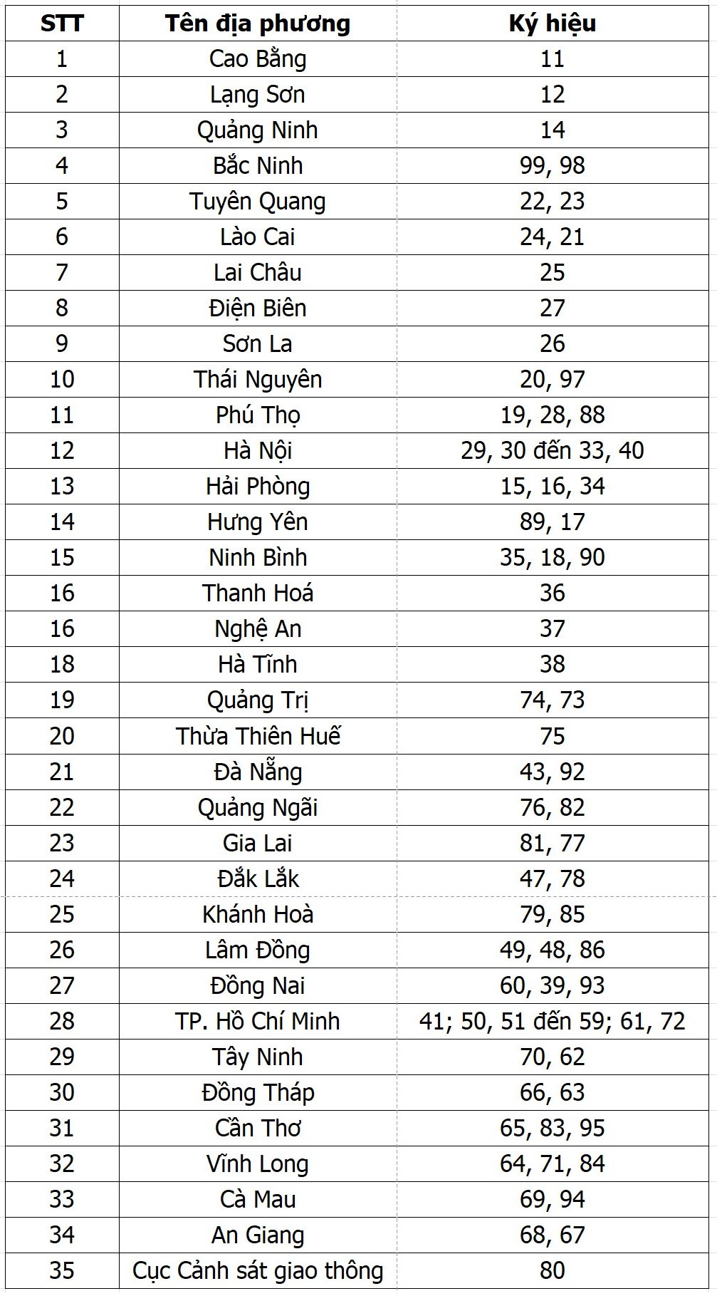 Cục CSGT: Bảng số xe 34 tỉnh thành sau sáp nhập