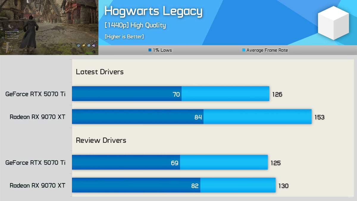 Thông tin này đến từ kênh YouTube Hardware Unboxed. Dựa trên các bài kiểm tra benchmark thực hiện trên 16 tựa game khác nhau ở độ phân giải 1440p, RX 9070 XT nhanh hơn 9% so với khi sử dụng driver ban đầu (từ tháng 3/2025).