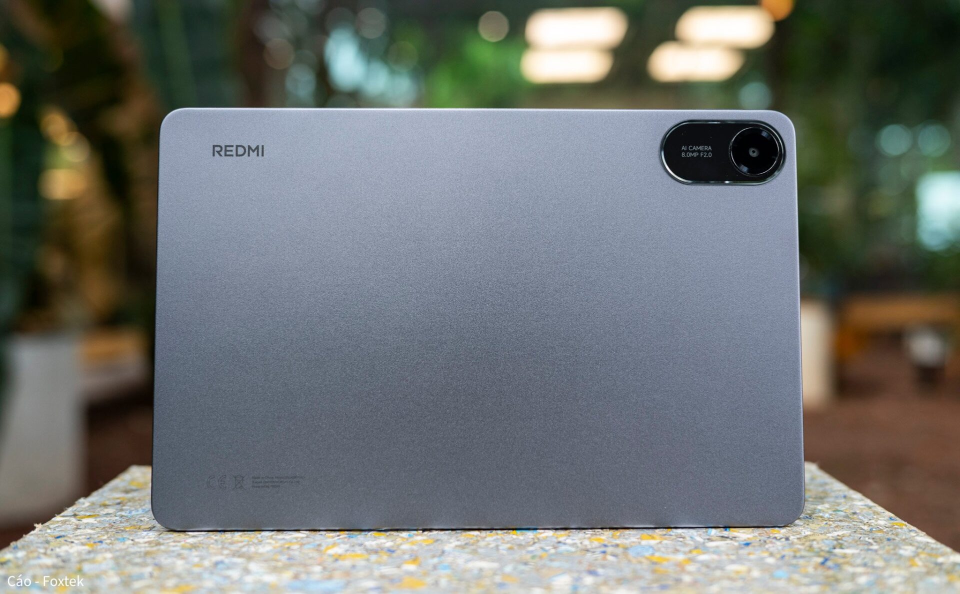 Tổng quan phần mặt lưng của Redmi Pad 2 được thiết kế tối giản với dòng chữ “REDMI” ở góc trái và cụm camera ở phía đối diện.