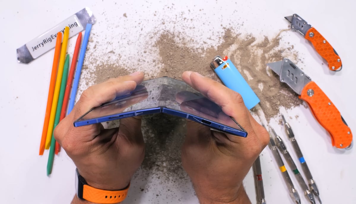 Ông đầu trọc này không phải cuhiep đâu mà là JerryRigEverything – người luôn hành hạ những chiếc smartphone không thương tiếc. Và sau khi bị đốt, bị cào, bị bẻ.. bẻ ngược thì nó vẫn sống sót thần kỳ đến ngạc nhiên.