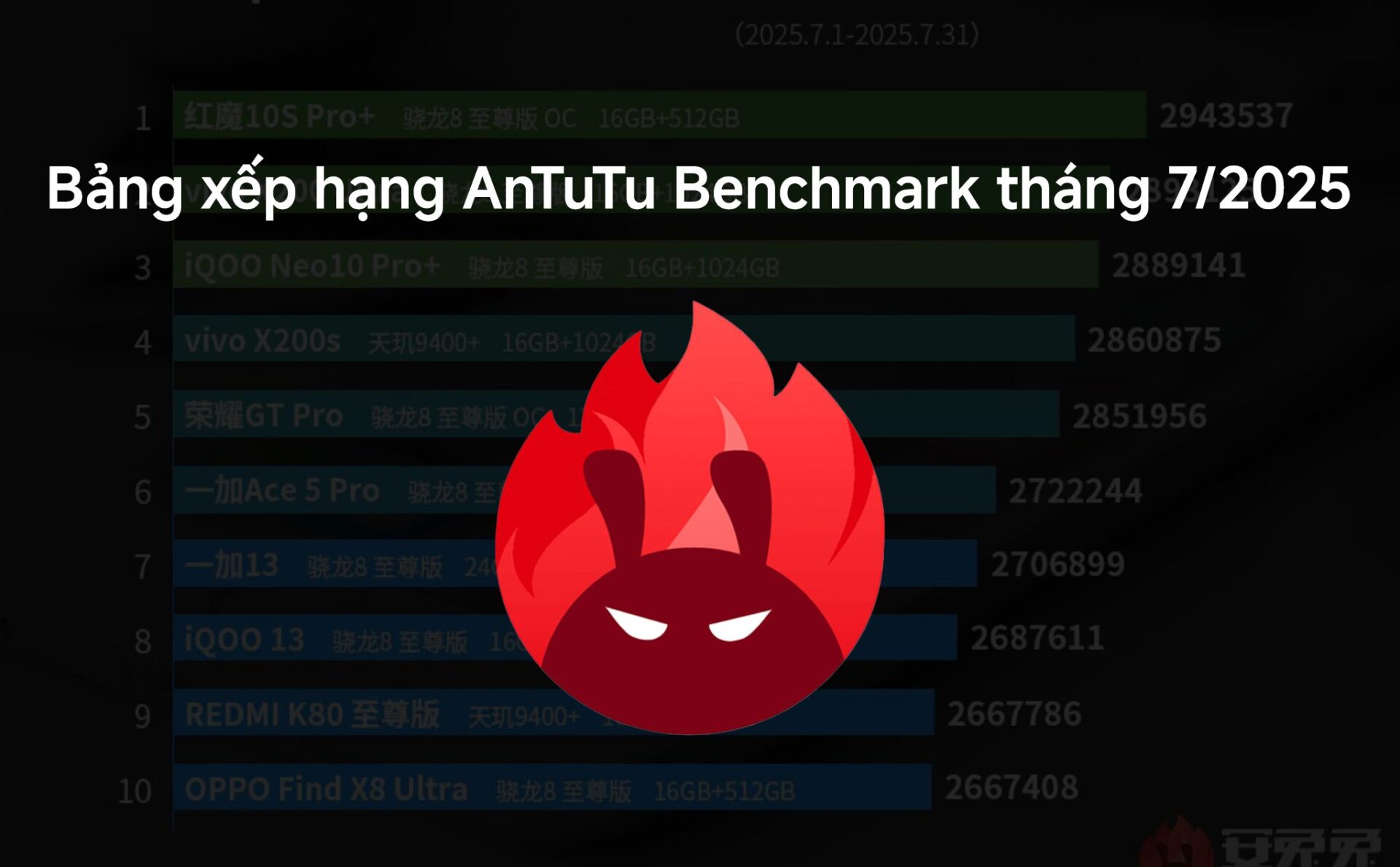 TOP 10 smartphone, tablet Android có điểm AnTuTu Benchmark cao nhất tháng 7/2025 | Viết bởi Cáo