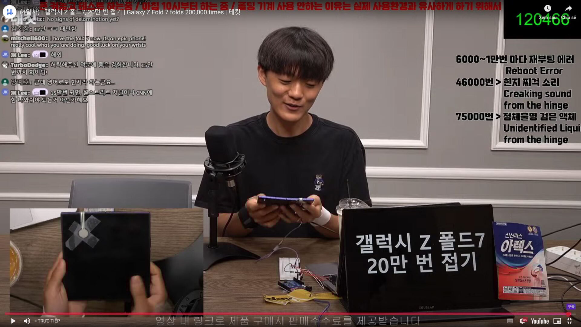Đang có livestream thử gập mở Z Fold 7 200 ngàn lần: đã được nửa đường