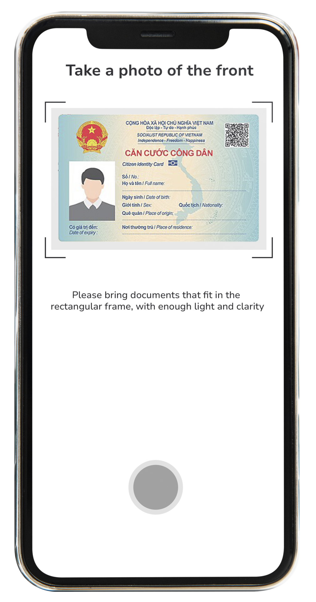 If the information on the paperwork confirms the procedure, the user will take a photo of his or her face (via the camera at the check-in location or the camera of the mobile device). This photo will be used to match the face with the photo in the citizen identification card of the person doing the procedure to ensure identification of the owner. If the match is successful, the authentication process is completed.