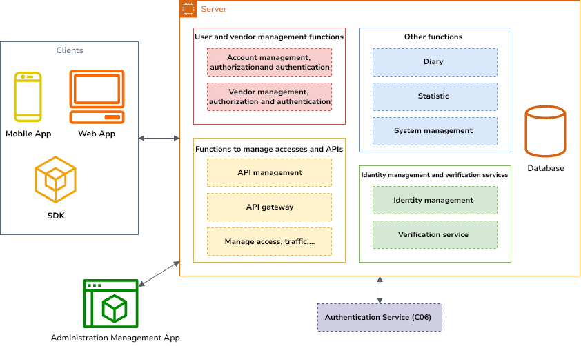 The system uses client – server architecture for development and deployment. In addition, for CCCD verification services provided by C06 or needing to integrate with 3rd party services, the system will consider these services as microservices and call APIs for use.