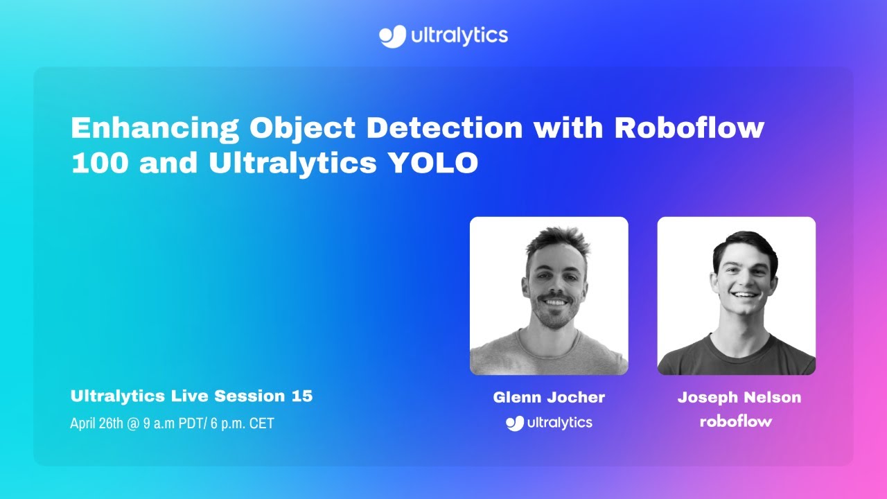 Join us for Ultralytics Live Session 15, featuring Ultralytics Founder and CEO Glenn Jocher, and Joseph Nelson, Co-Founder at Roboflow. In this engaging session, we delve into the Roboflow 100 (RF100) Datasets and their integration with Ultralytics YOLO models. The RF100, developed by Roboflow and sponsored by Intel, is an object detection benchmark comprising 100 […]
