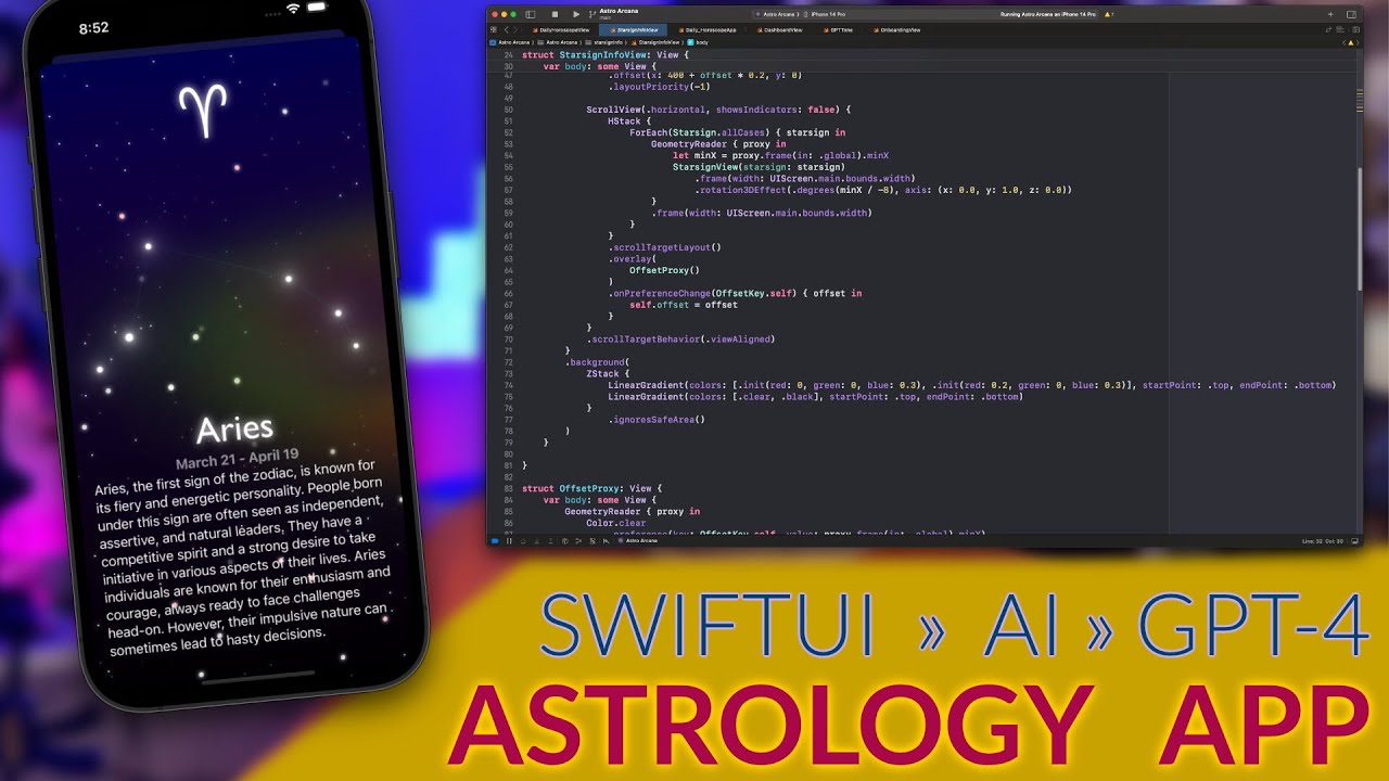 Here’s the CODE: https://github.com/BeauNouvelle/gpt-4-horoscope-app Here’s the design we tried going for! https://dribbble.com/shots/14168746-Astrology-Horoscope-App ——————— Discord https://discord.gg/MXpthxvagJ Mastodon https://iosdev.space/@beau Github https://github.com/beaunouvelle Patreon – Get a free book! https://www.patreon.com/beaunouvelle Kodeco https://www.kodeco.com/u/beaunouvelle ————————- Are you a music teacher? Download my app! https://mustud.app —————— #swiftui #softwaredeveloper #chatgpt source