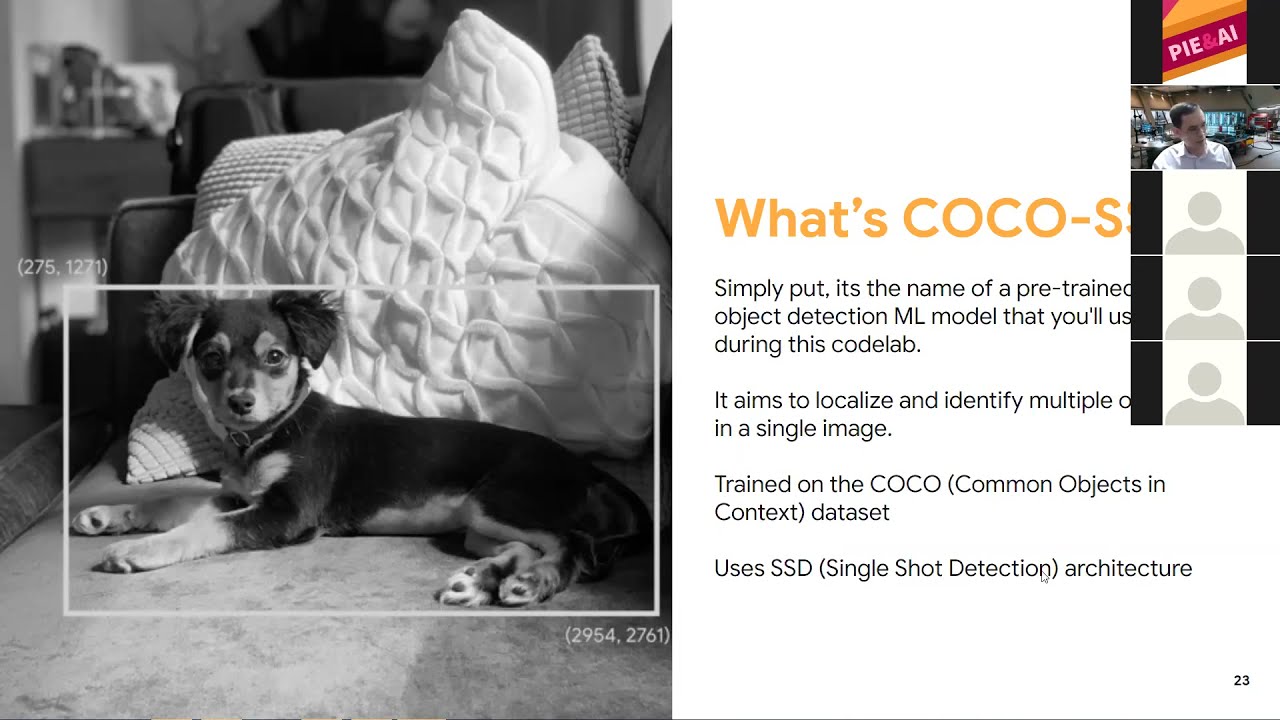 This is the hands on part during the Pie & AI event “Intro to ML & Tensorflow” on 29th August 2021 presented by Vincent Kok, Tensorflow.js community advocate and STEM AI Robotics Specialist. Make a smart webcam in JavaScript with a TensorFlow.js pre-trained Machine Learning model: https://codelabs.developers.google.com/codelabs/tensorflowjs-object-detection#0 source