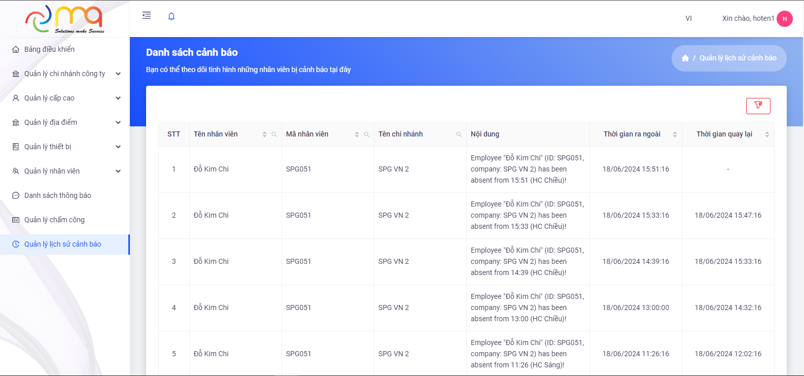 2. As long as the phone appears within the scanning range of the Box device, the system will automatically record it for timekeeping and send notifications to employees. In case Box does not find an employee’s phone within a certain period of time (can be set), the system will automatically send a warning (email, zalo) to the manager and that employee.